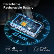 - 45mins Long-lasting Runtime: The cordless handheld vacuum is equipped with a 3000mAh large-capacity removable battery, offering a long-lasting runtime. In Standard Mode, cordless stick vacuum cleaner provides up to 35-45 minutes of high-performance cleaning, while in MAX Mode, it delivers 20-30 minutes. It can achieve a comprehensive cleanliness for the entire house.
